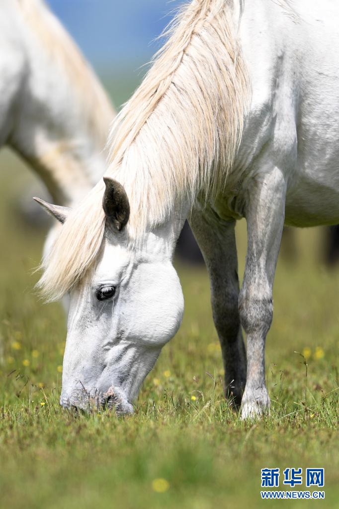 這是7月15日在甘肅瑪曲縣河曲馬場(chǎng)拍攝的河曲馬。新華社記者 杜哲宇 攝