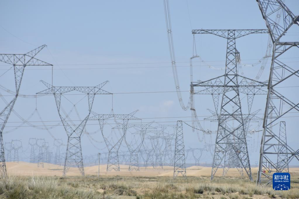 這是9月1日拍攝的位于青海省海南藏族自治州共和縣的青豫直流工程輸電線(xiàn)路。新華社記者 解統(tǒng)強(qiáng) 攝