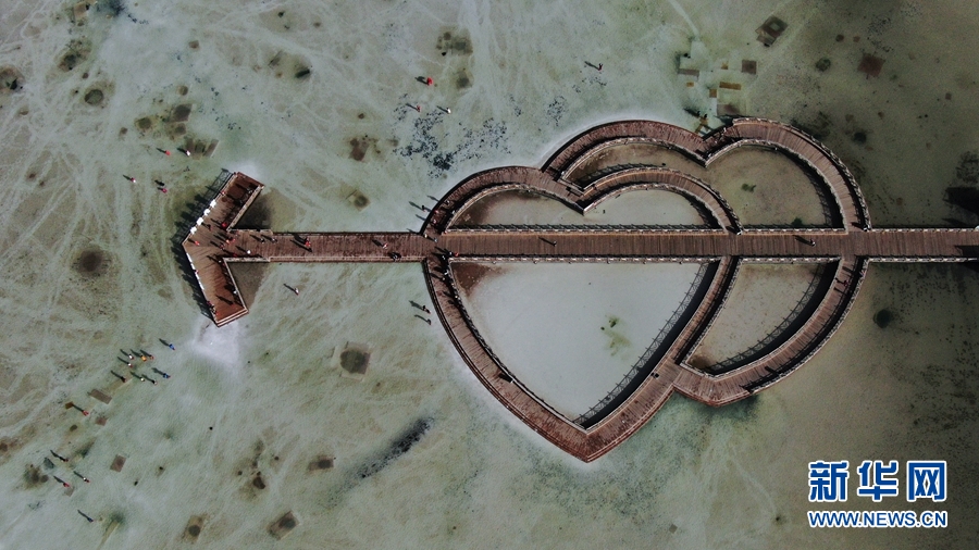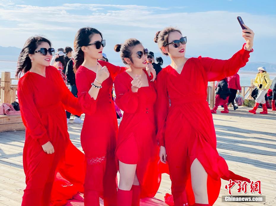 圖為游客們?cè)诓杩}湖拍照。孫睿 攝