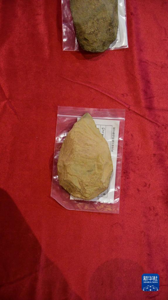 這是在四川稻城皮洛遺址發(fā)現(xiàn)的手斧(9月12日攝)。新華社記者 謝佼 攝
