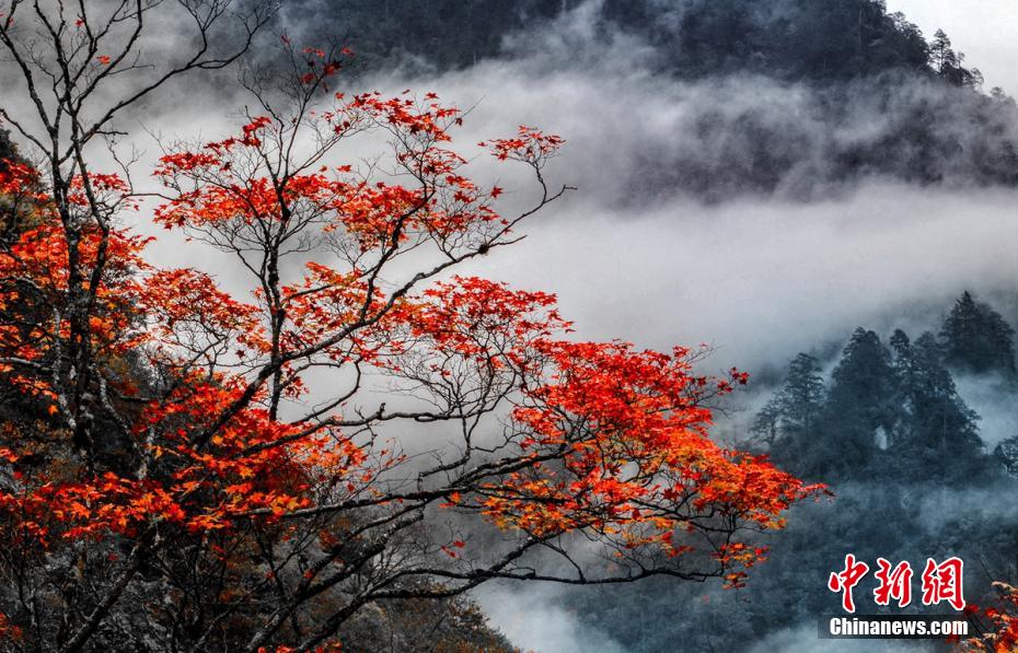 初冬伊始,秋意末盡。在四川省雅安市寶興縣磽磧藏族鄉(xiāng)境內(nèi)滿山遍野層林盡染,秋葉正紅,多色秋葉與山水交融成畫,風(fēng)景美不勝收。 劉剛/文 高華康/攝