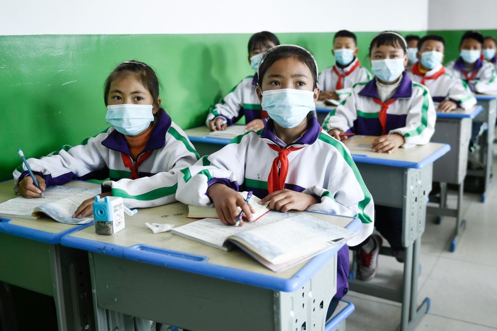 教室里,孩子們聚精會(huì)神,書聲瑯瑯。13歲的扎西拉毛是瑪多縣黃河鄉(xiāng)寄宿制學(xué)校五年級(jí)學(xué)生,“今年9月1日,我們?cè)跍嘏蓛舻男陆淌矣瓉硇聦W(xué)期。我一定會(huì)懷著一顆感恩的心,努力學(xué)習(xí)。”