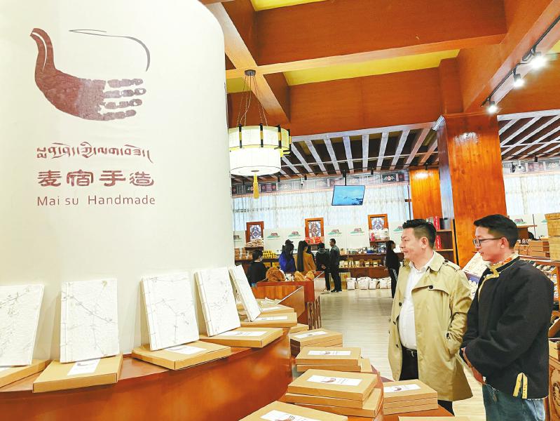 “康巴文都”文創(chuàng)產(chǎn)品展示中心內(nèi),許多德格手工藝人的作品在這里展示銷售,它們大多來自德格縣麥宿片區(qū)。這里,正是成都高新區(qū)幫扶德格縣手工藝產(chǎn)業(yè)發(fā)展的“主戰(zhàn)場”。