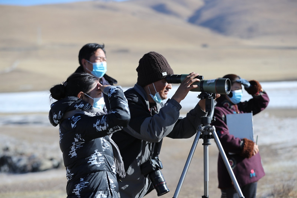 尕海保護站工作人員實地開展鳥類監(jiān)測調查。