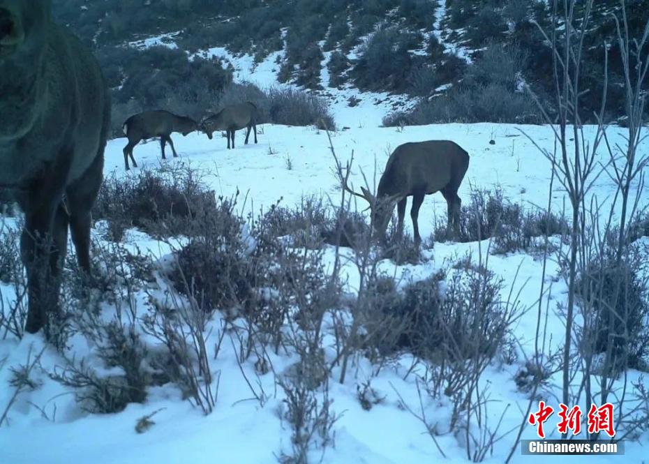 圖為紅外相機(jī)在大通北川河源區(qū)國(guó)家級(jí)自然保護(hù)區(qū)東峽區(qū)域拍攝到的馬鹿。 大通北川河源區(qū)國(guó)家級(jí)自然保護(hù)區(qū)管理局供圖