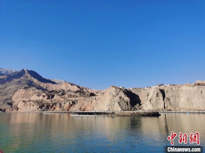圖為青海省黃南藏族自治州尖扎縣黃河水面冷水魚(yú)養(yǎng)殖網(wǎng)箱?!?zhí)砀!z