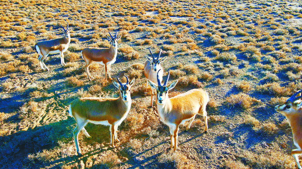 鵝喉羚尕海湖畔結(jié)伴覓食。通訊員 索南江措 攝