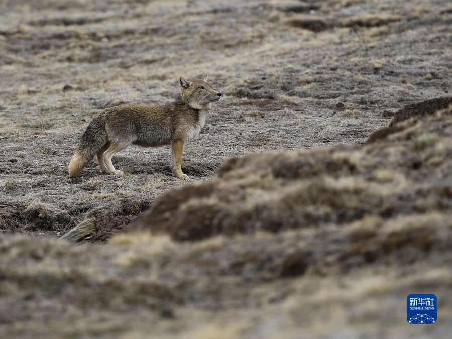 2021年5月25日,一只藏狐在三江源國家公園黃河源園區(qū)內(nèi)活動。新華社記者 張龍 攝