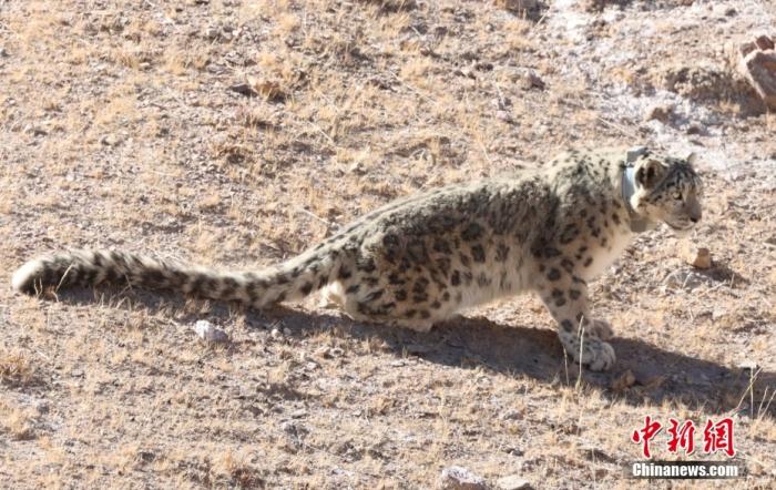 資料圖為佩戴衛(wèi)星追蹤項(xiàng)圈的雪豹被放歸。中新社發(fā) 祁連山國(guó)家公園青海省管理局供圖