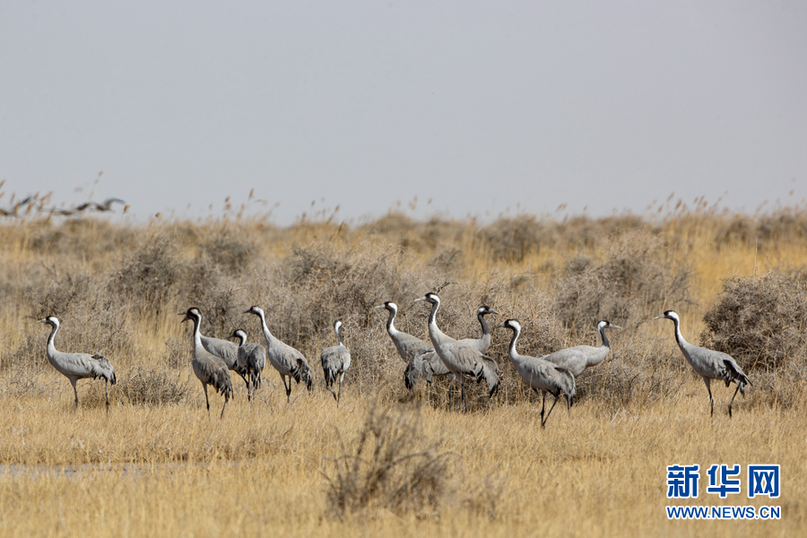 攝影愛好者在都蘭縣巴隆鄉(xiāng)境內(nèi)拍攝到的灰鶴。新華網(wǎng) 松太加 攝