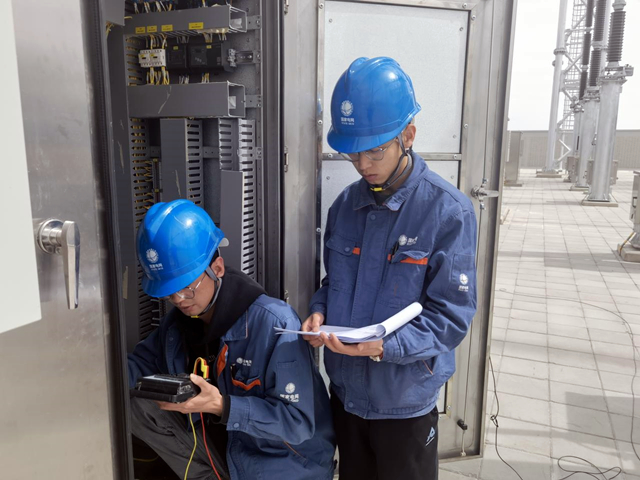 變電檢修人員對(duì)設(shè)備開(kāi)展細(xì)致驗(yàn)收。李斌 攝