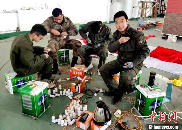 圖為姜軍(右一)和大家一起干活。(資料圖) 受訪者供圖