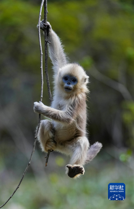 這是4月26日在四川白河國家級自然保護(hù)區(qū)里拍攝的川金絲猴。新華社記者 江宏景 攝
