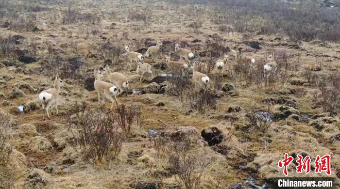 圖為藏原羚種群們?cè)谏狡轮行蓓2苊皴| 攝