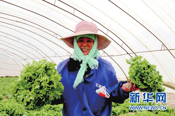 (資料圖)農(nóng)戶展示在大棚內(nèi)收獲的蔬菜。新華網(wǎng)發(fā)