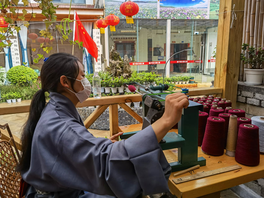 2022年5月12日,“5·12”汶川特大地震抗震救災(zāi)14周年紀(jì)念日,山鷹帶著幾個(gè)員工來到漁子溪,在汶川縣黨委、映秀鎮(zhèn)黨委、漁子溪村兩委及當(dāng)?shù)厝罕姷臒崆閹椭拢e辦了“藍(lán)措馬”品牌圍巾展示活動。村里還積極幫助他們尋找合適的房屋作為編織車間,讓他們先在漁子溪站住腳。