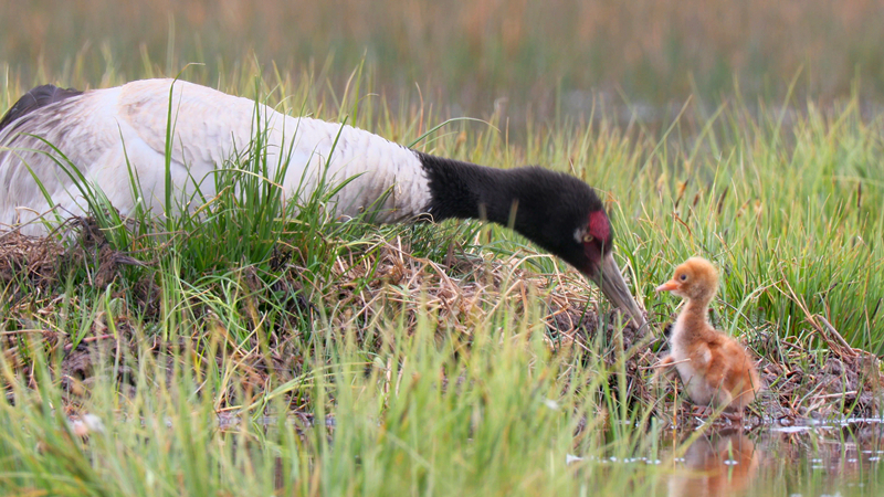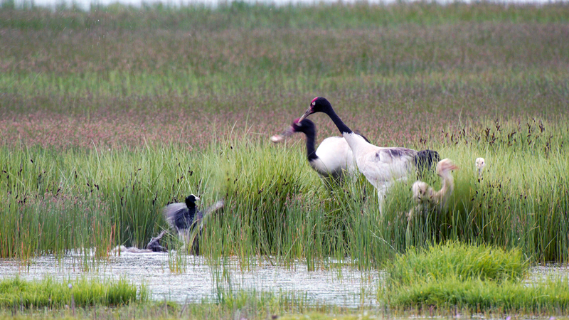 祁連山國(guó)家公園里黑頸鶴一家的幸福生活