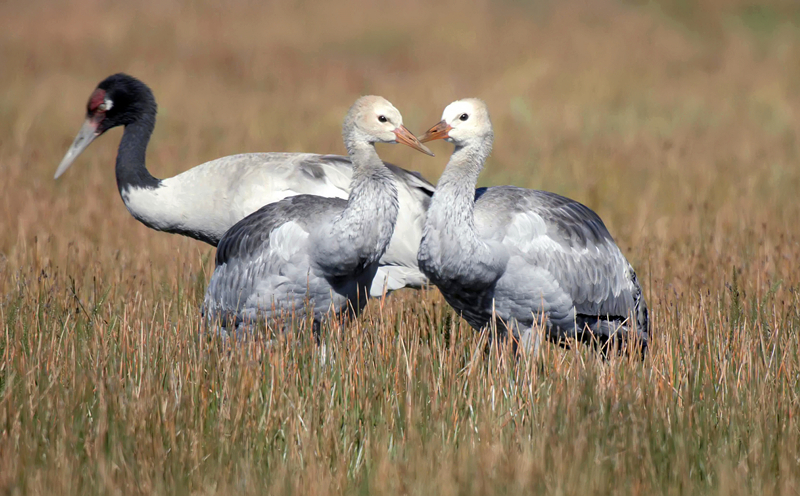 黑頸鶴驅(qū)逐闖入領(lǐng)地的其他鳥類。張景元 攝