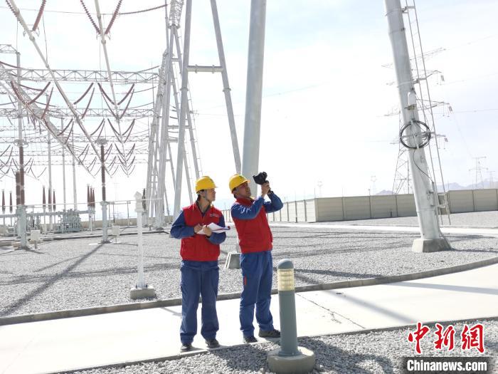 圖為國(guó)網(wǎng)青海超高壓公司格爾木運(yùn)維分部專業(yè)人員全力以赴做好電網(wǎng)保電工作。趙旻珺 攝