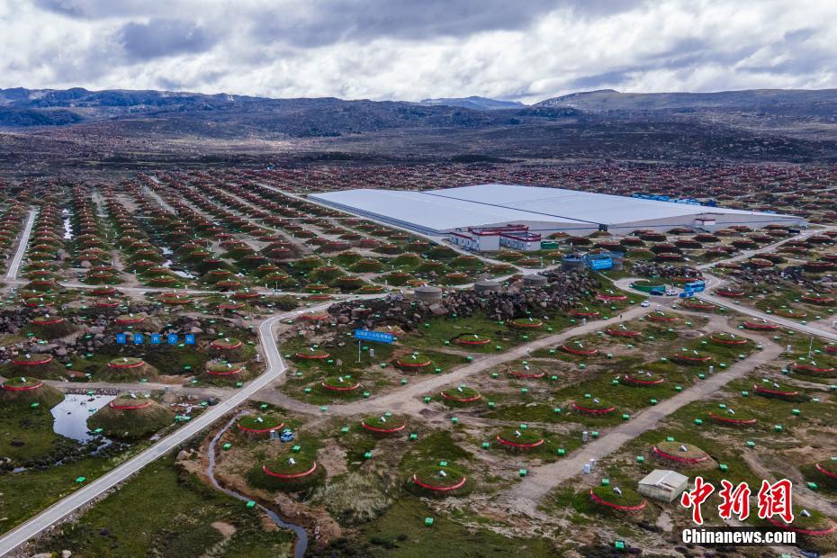 6月28日,四川稻城,航拍稻城高海拔宇宙線觀測站。海拔4410米的四川省甘孜州稻城縣海子山,5216個電磁粒子探測器和1188個繆子探測器,以及占地78000平方米的水切倫科夫探測器有序分布在1.36平方公里范圍,十分壯觀,這是中國建設的第三代高山宇宙線實驗站。中新社記者 劉忠俊 攝