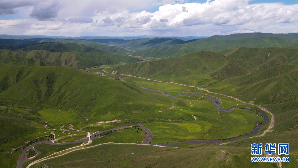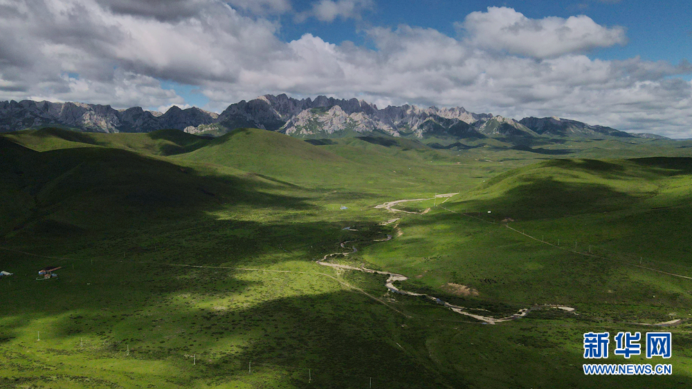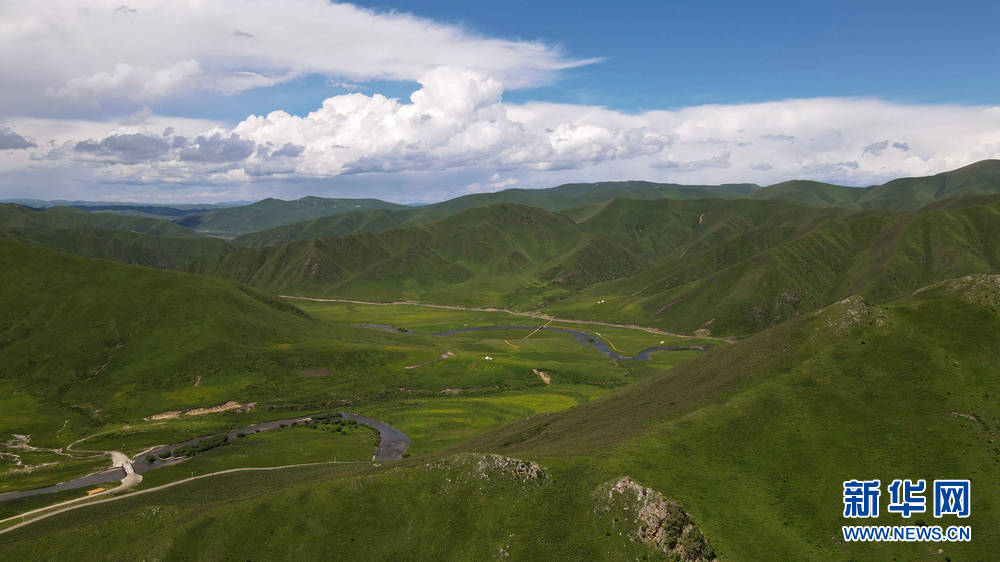 時值盛夏,青海省黃南藏族自治州河南蒙古族自治縣境內(nèi)的青海洮河源濕地公園,奇峰聳立、水草豐美。藍天白云之下,高山與草原相映,風光旖旎、如詩如畫。