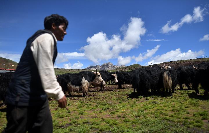 優(yōu)美村生態(tài)畜牧業(yè)專業(yè)合作社牧工準(zhǔn)備將牦牛趕往夏季草場(chǎng)。新華社記者 張宏祥 攝