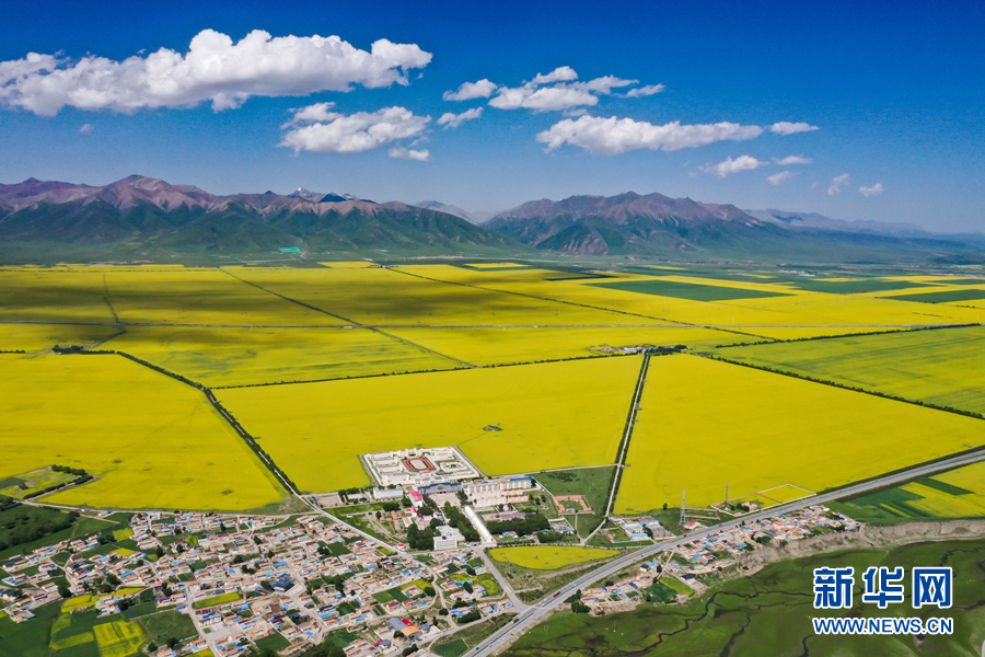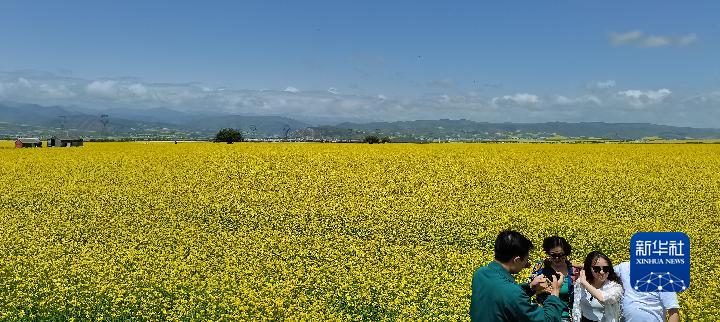 盛夏時(shí)節(jié),從青海省會(huì)西寧出發(fā),沿張汶高速公路驅(qū)車1個(gè)多小時(shí),就進(jìn)入門(mén)源回族自治縣境內(nèi)。油菜花鋪展出“金色花?!保斓亻g融為一幅濃墨重彩的天然畫(huà)卷。
