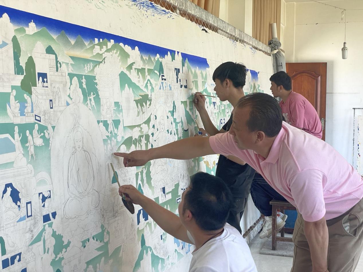 作為熱貢藝術(shù)(建筑彩繪)省級(jí)傳承人的更登,2007年3月成立黃南州更登熱貢藝術(shù)有限公司,先后培養(yǎng)了100多名優(yōu)秀的唐卡藝人,自公司成立以來(lái)累計(jì)培養(yǎng)學(xué)員410人,其中300余人現(xiàn)已成為熱貢藝人群體中的精英人才,公司助力200多戶脫貧戶增收致富。