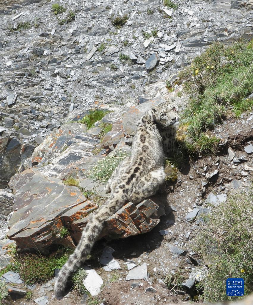 這是7月15日在曲麻萊縣巴干鄉(xiāng)代曲村拍攝的雪豹。新華社發(fā)(尼瑪 攝)