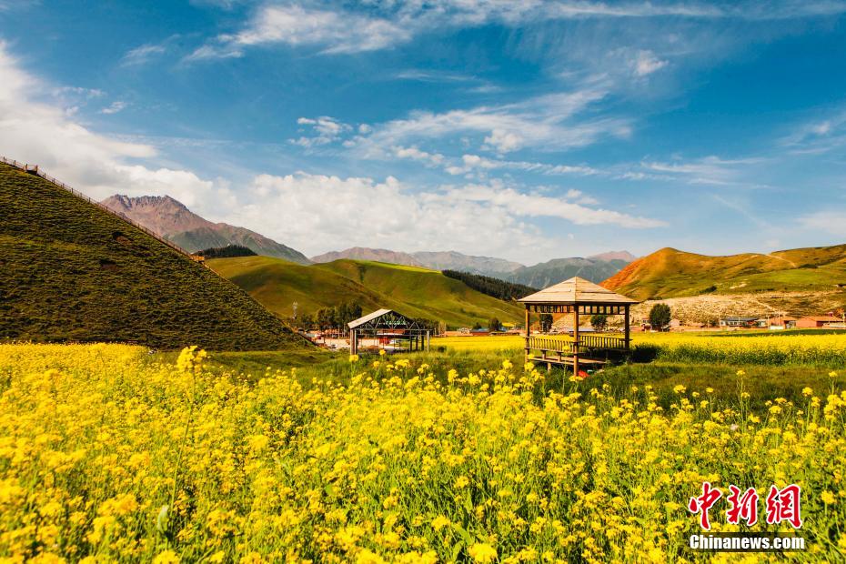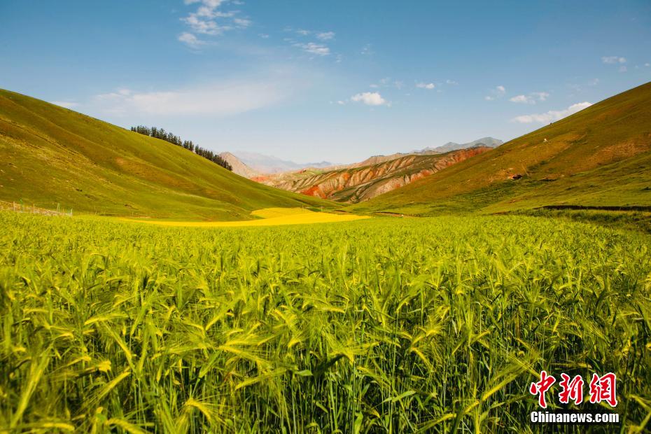 盛夏時節(jié),走進(jìn)青海海北藏族自治州祁連縣,親臨卓爾山讓人感覺到這里環(huán)境幽靜,空氣清新,風(fēng)景秀麗,數(shù)十條褶皺山脈縱橫捭闔,紅色的砂巖礫石放射出丹霞地貌特有的光采。平緩的坡地上,油菜花、青稞,牧草、鮮花、原始森林相互間雜,田野、村莊與大自然融為一體,在大地上描繪出一幅氣勢恢弘色彩斑斕的畫卷。 趙海梅 攝