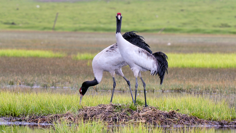 黑頸鶴頻繁“駐足”中國“鹽湖城”
