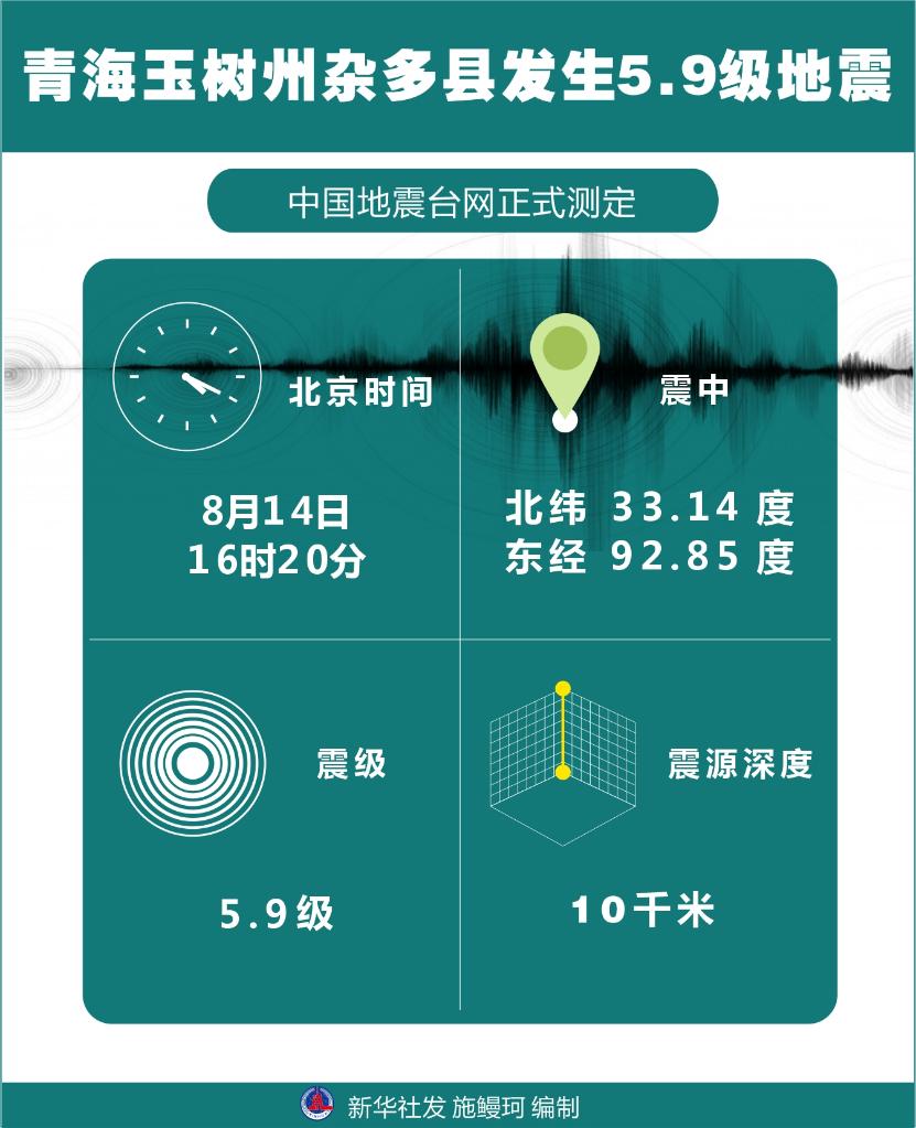 記者從青海省地震局獲悉,8月14日16時(shí)20分,青海省玉樹藏族自治州雜多縣發(fā)生5.9級地震,震源深度10千米,震中位于北緯33.14度、東經(jīng)92.85度。目前,暫無人員傷亡消息。