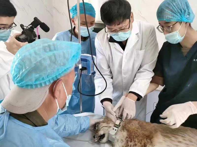 青海野生動(dòng)物救護(hù)繁育中心工作人員正在救助猞猁。(圖片由青海省林業(yè)和草原局提供)