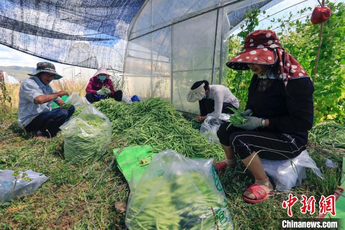 八月中旬,在四川省阿壩藏族羌族自治州壤塘縣的熱布卡蔬菜基地,五月種植的第一批四季豆(學(xué)名菜豆,下同)正值豐收。50歲的陳老會年初從云南來到四川壤塘工作,她和工友們將剛采摘的四季豆篩選裝袋,近五十斤重的包裝袋整齊鋪滿地面?!拔覀兿挛绮烧氖卟耍诙煸缟暇湍艹霈F(xiàn)在成都的市場上?!彼^也不抬地忙著手中的活。