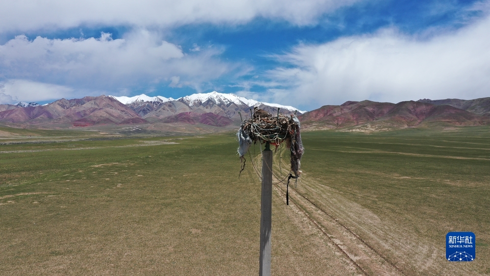 記者在草原上,不時(shí)能見到一根根五六米高的水泥桿,桿上筑有鳥巢或六邊水泥方臺(tái)。當(dāng)?shù)毓ぷ魅藛T介紹,這是人工架設(shè)的“招鷹架”,吸引老鷹等猛禽前來?xiàng)?、筑巢,達(dá)到控制鼠群的目的。
