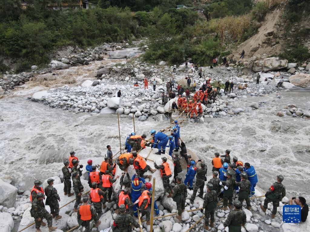 9月6日,武警四川總隊甘孜支隊救援官兵在瀘定縣磨西鎮(zhèn)燕子溝河谷,與多方救援力量一起搭建通往磨子溝村的橋梁。[詳細] -