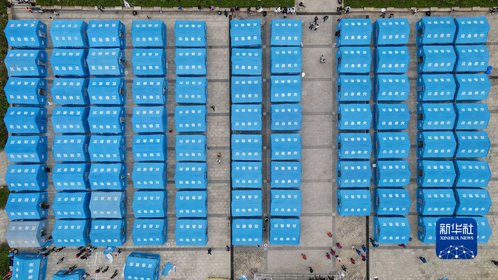 這是9月6日拍攝的位于石棉縣王崗坪鄉(xiāng)挖角村村委會的安置點(無人機照片)。新華社記者 胥冰潔 攝