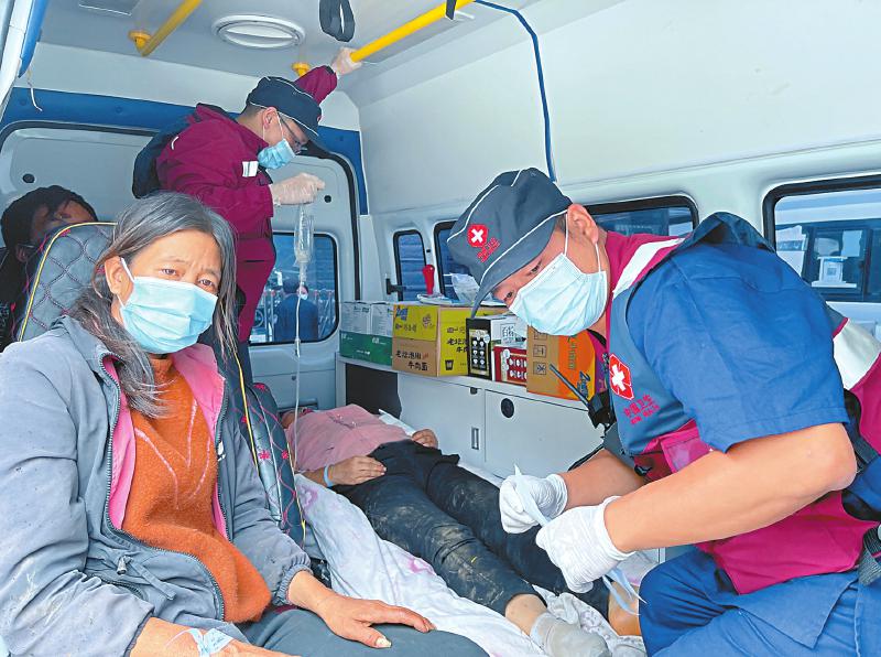 民盟盟員、骨傷專家王振龍參與轉(zhuǎn)運地震傷員。