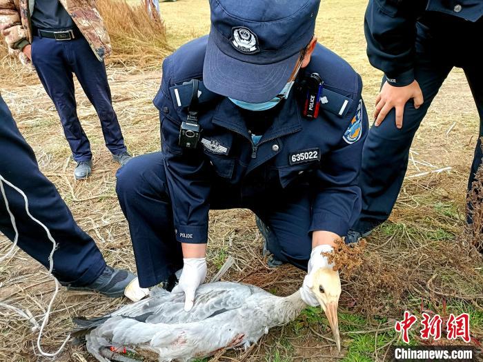 青海門源警方救助國家一級(jí)保護(hù)動(dòng)物黑頸鶴