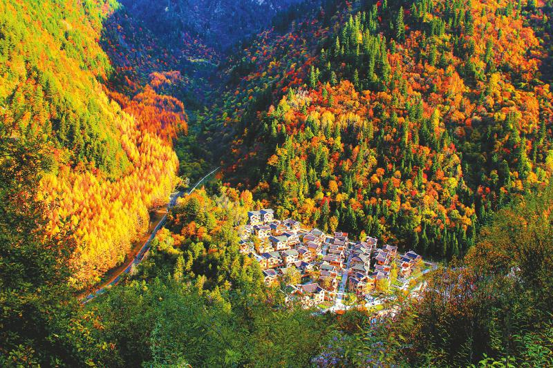 10月下旬是黑水縣彩林最美的時(shí)節(jié)。依托彩林資源,黑水縣沙石多鎮(zhèn)羊茸村整村搞起鄉(xiāng)村旅游。黑水縣委宣傳部供圖(資料圖片)