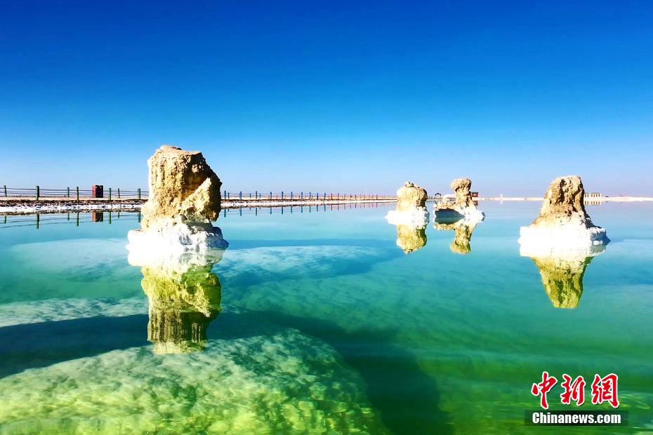 察爾汗鹽湖似秋日寶玉 中國聚寶盆“只此青綠”