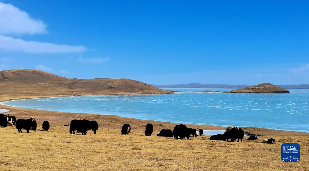 在三江源國家公園黃河源園區(qū)拍攝的扎陵湖畔,水草豐美,牦牛成群。(新華社記者 呂雪莉 攝)