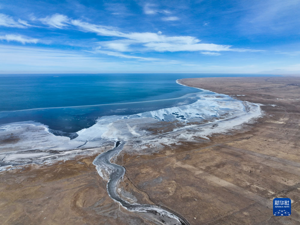 這是2022年12月9日拍攝的青海湖一角(無人機(jī)照片)。(新華社記者 張龍 攝)