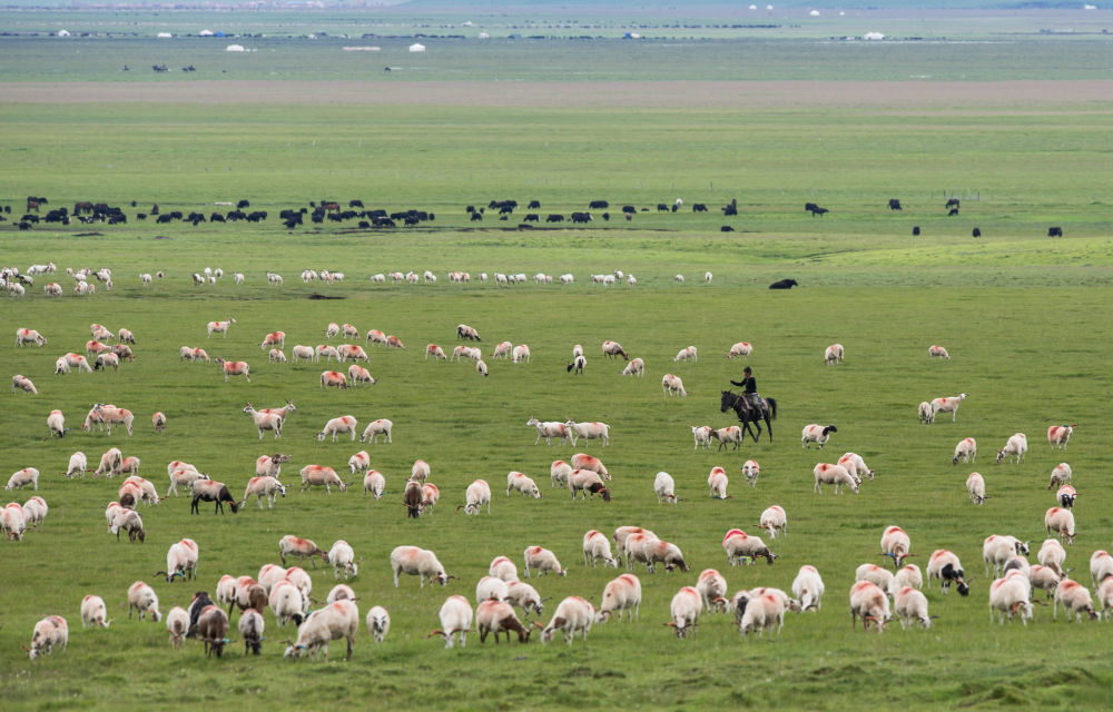 牛羊徜徉在四川若爾蓋濕地國家級自然保護區(qū)里(2022年7月25日攝)。新華社 江宏景 攝