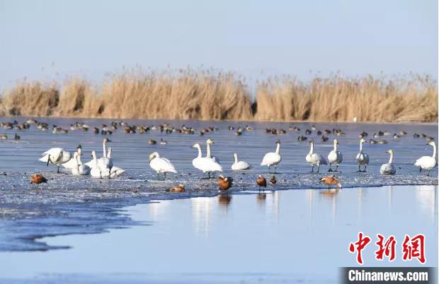 青海越冬大天鵝樂享“天下黃河貴德清”