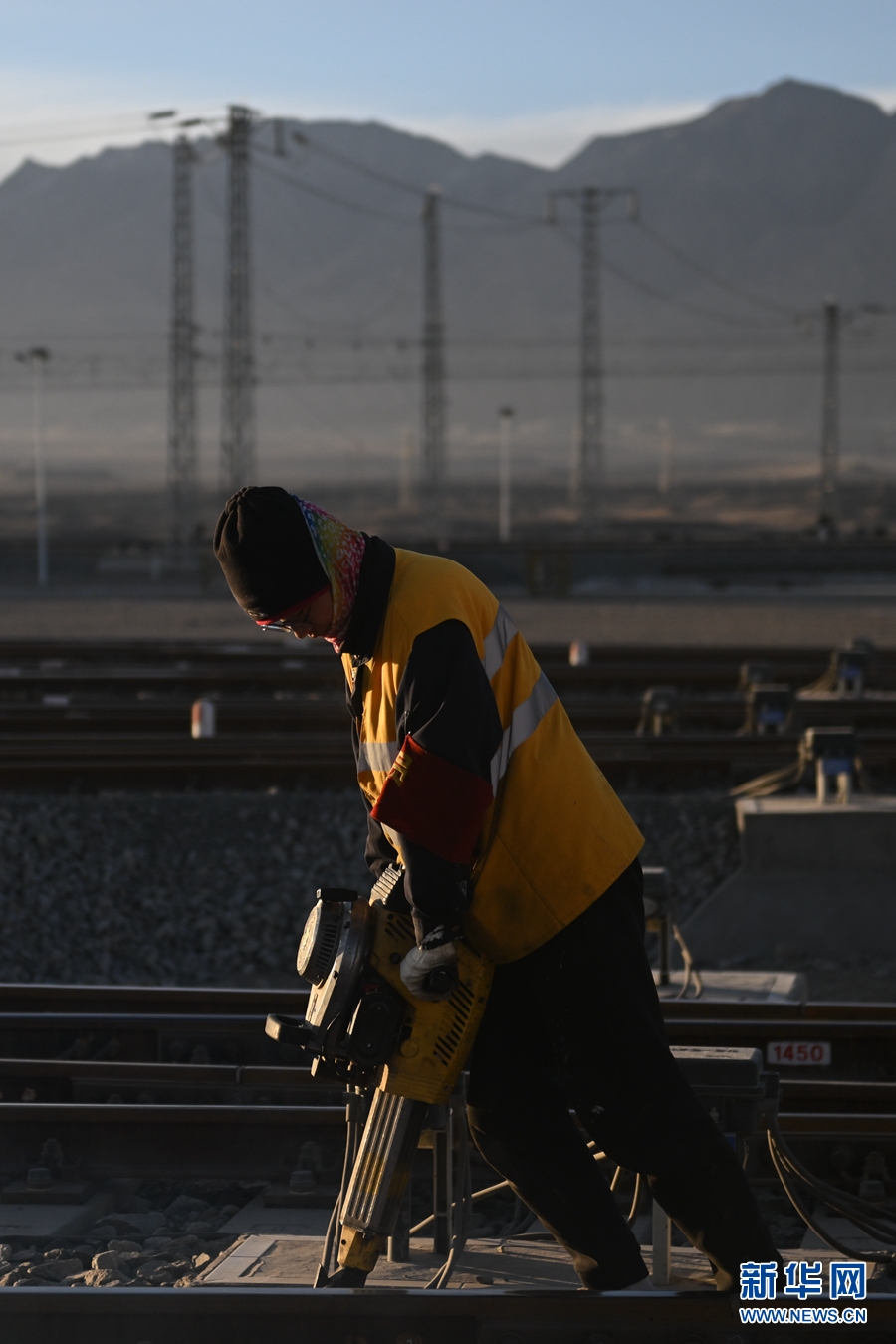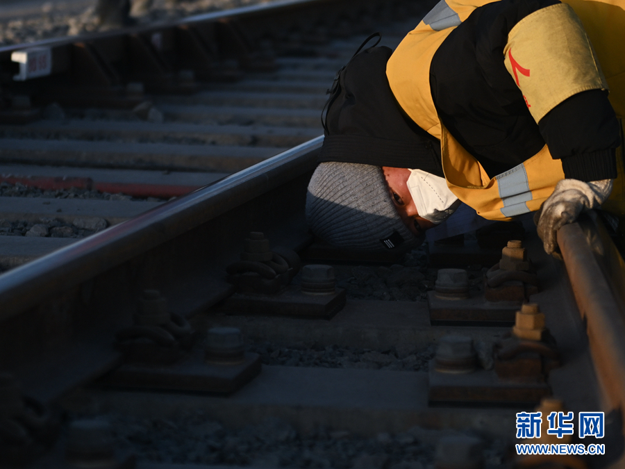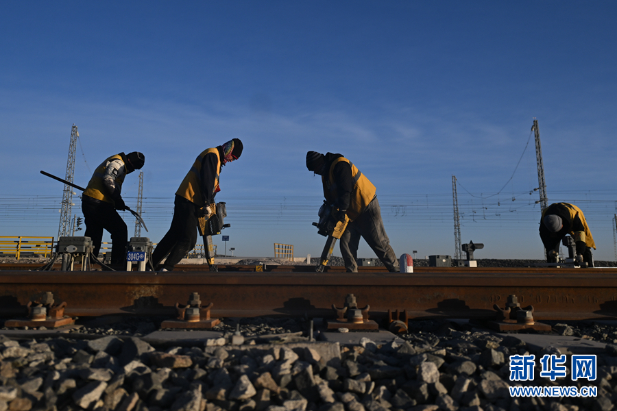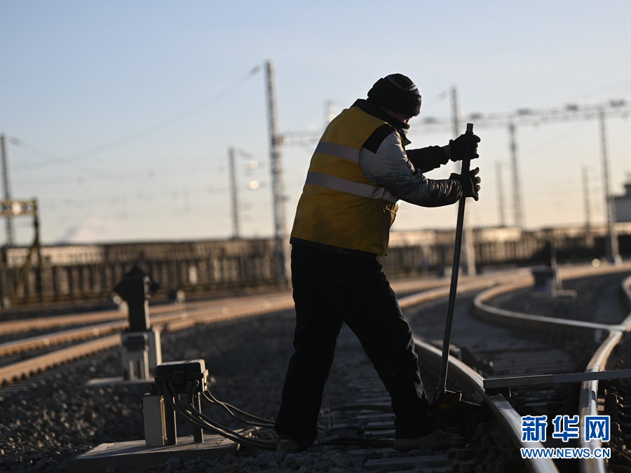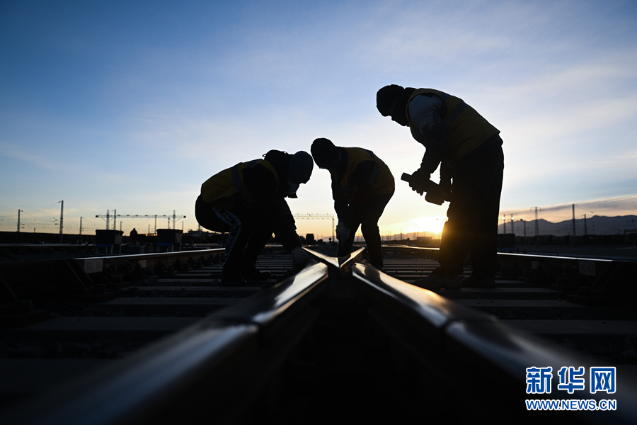 2月7日,中國鐵路青藏集團有限公司格爾木工務(wù)段格南線路工區(qū)的職工在格爾木南站施工。新華社記者 張龍 攝