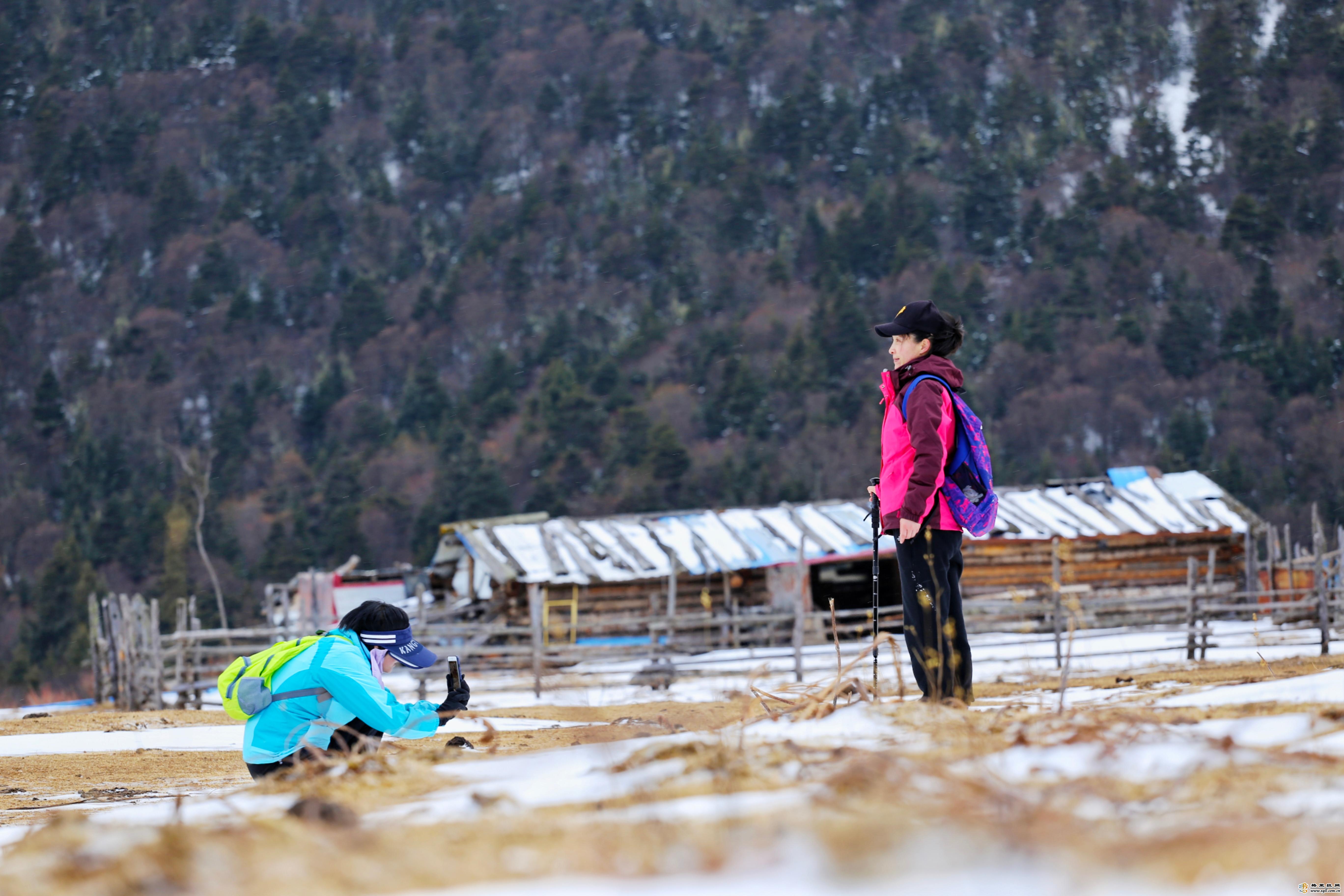 一路上,大家漫游在白雪覆蓋的森林草原中,欣賞著美麗的冰雪風(fēng)景,感受陣陣山風(fēng)將懸崖、樹(shù)梢上的白雪吹落到臉龐上的清涼,聆聽(tīng)溪流破冰流淌的叮咚聲,斑駁的雪色、金黃的草地和牧民的小木屋在亞拉青波牧場(chǎng)上繪出了別致景色。