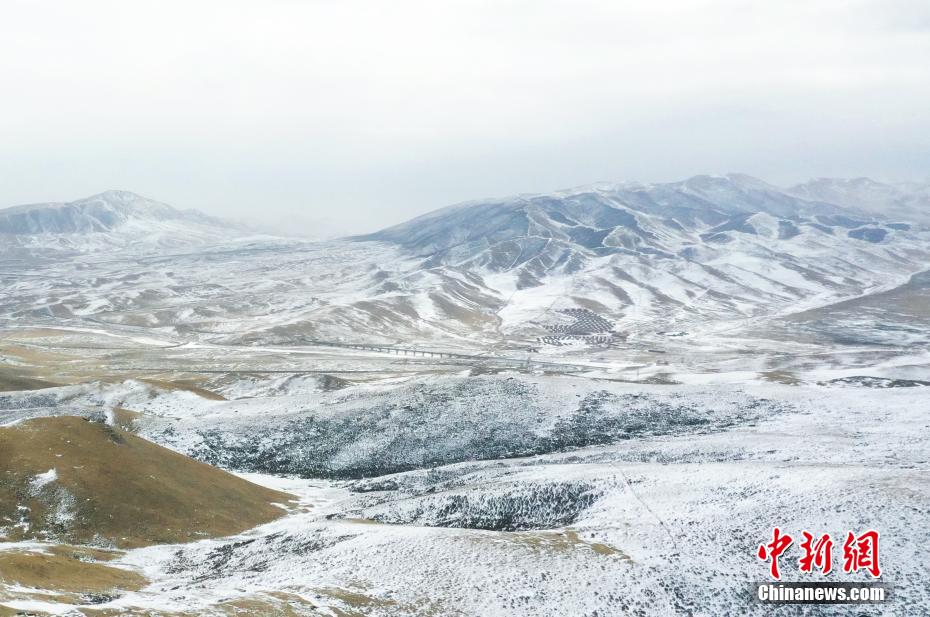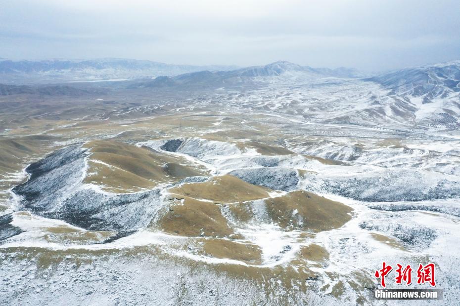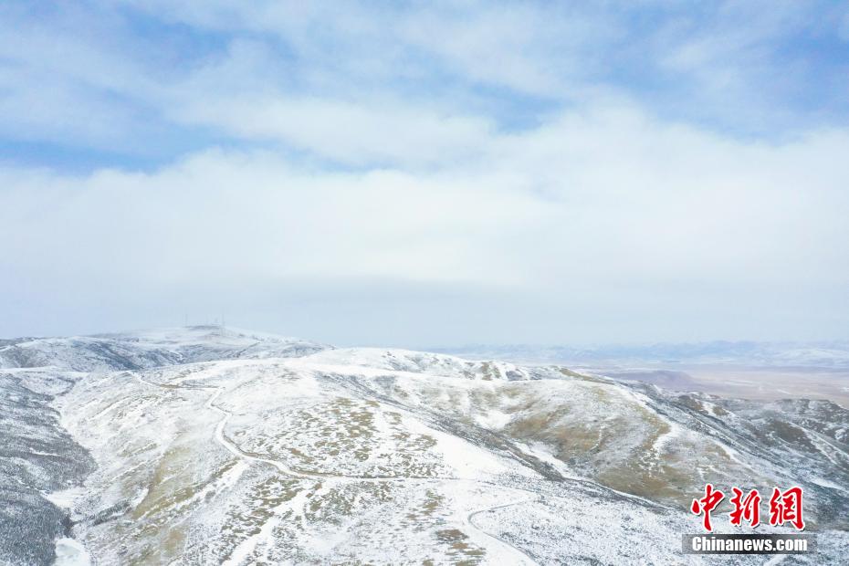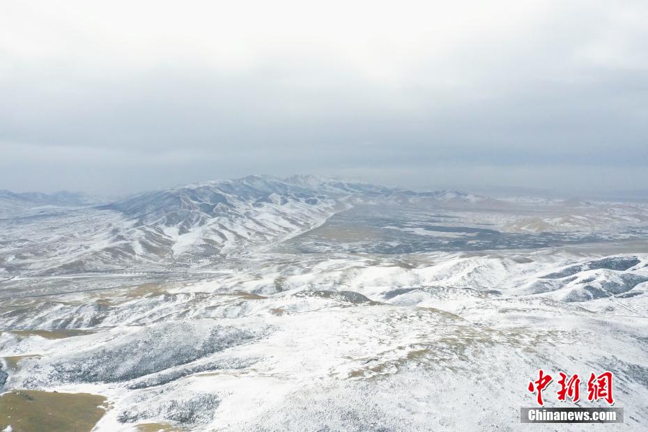 2月17日,航拍位于青海省海北藏族自治州海晏縣,祁連山脈同寶山壯美雪景。一場春雪過后,同寶山連綿的山巒被白雪覆蓋,遠(yuǎn)處的青海湖若隱若現(xiàn),盡顯壯美。