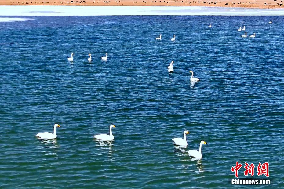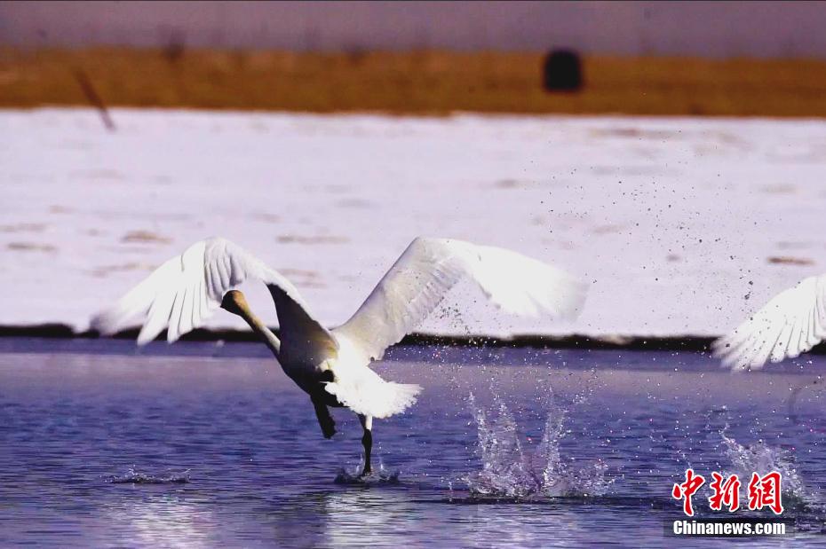 高原初春,在素有“高原藍(lán)寶石”之稱的青海湖,記者拍攝到成群大天鵝在湖面上練習(xí)起飛、降落、滑行。青海國(guó)家公園觀鳥協(xié)會(huì)會(huì)長(zhǎng)王艦艇介紹,每年3月中旬,在青海越冬的大天鵝都會(huì)踏上北遷繁殖路。目前在青海湖的大天鵝多為青海東部黃河流域的“冬候鳥”,在青海湖短暫停留后北遷到夏季繁殖地,在秋末初冬時(shí)又會(huì)“舉家”回歸來(lái)到越冬地。大天鵝屬雁形目鴨科天鵝屬,為國(guó)家二級(jí)重點(diǎn)保護(hù)野生動(dòng)物,在國(guó)內(nèi)主要繁殖于新疆巴音布魯克,主要越冬地有天津及河北沿海、山東榮成和東營(yíng)、黃河中下游濕地、甘肅、青海、新疆等地。青海湖作為大天鵝的主要越冬地之一,開(kāi)闊的湖面、涌流的泉水與充足的食物為大天鵝提供了適宜的棲息環(huán)境。
