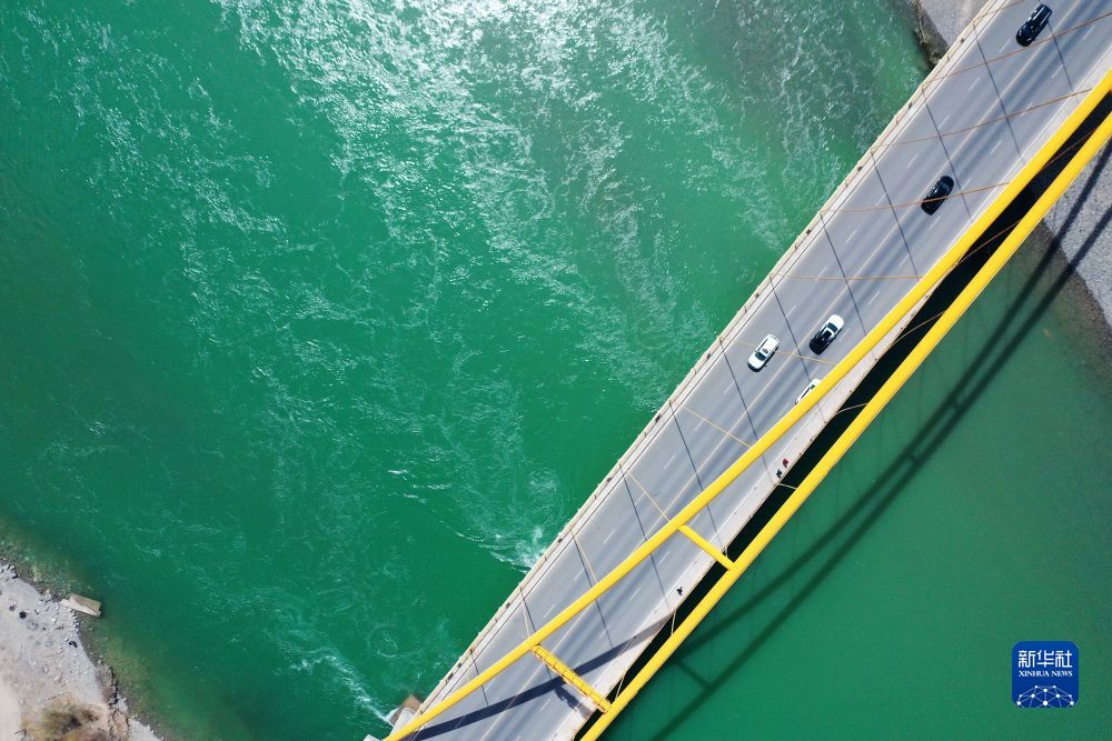 4月9日,車輛從大橋上駛過(無人機照片)。新華社記者 耿輝凰 攝
